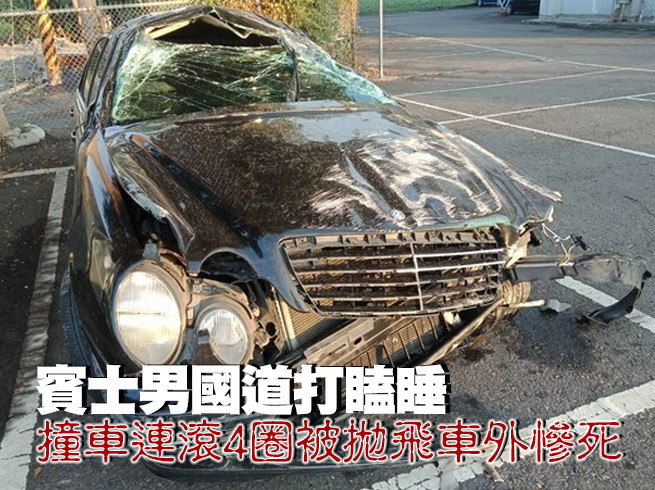 國道王田路段13日上午8時發生一起死亡車禍!賓士車駕駛打瞌睡撞到一輛休旅車,再自撞護欄騰空翻滾4圈後,賓士車駕駛拋飛車外慘死,國道三隊初步調查雙方無酒駕,全案先依過失致死罪將被撞的休旅車駕駛送辦,並待檢方相驗釐清事故原因。