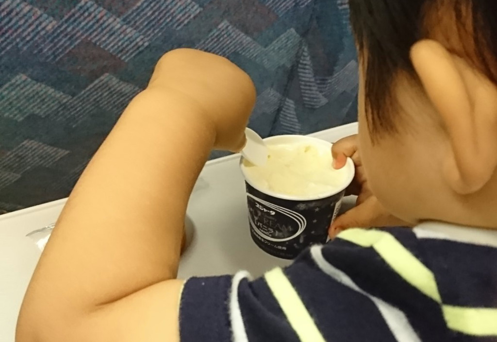 日本有一名網友日前帶著2歲的兒子搭乘新幹線時,偶然發現列車上賣的一個商品,竟然能讓兒子在密閉的車廂內,不吵不鬧,更不替其他乘客帶來困擾,安靜了長達30分鐘,讓她直呼,「根本就是隱藏版的育兒神器!」原來這名網友購買的就是新幹線限定販售的冰淇淋,由於這款冰淇淋不易融化的特性,讓小孩為了吃冰淇淋,能夠專心等待冰融化,在乘車過程中不會因無聊而大聲吵鬧,間接的替父母減輕育兒負擔。