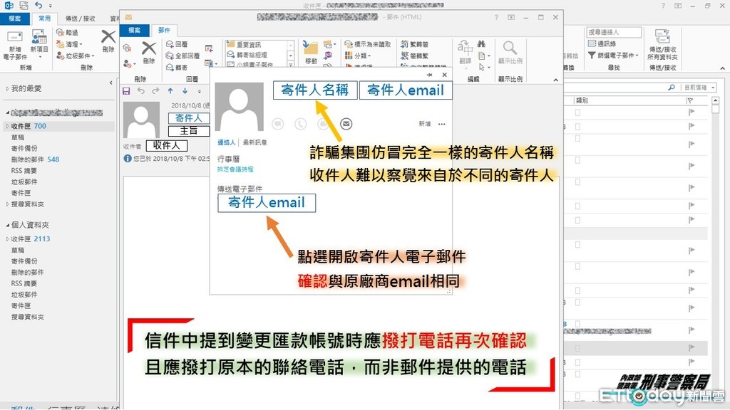 ▲刑事局今對貿易公司交易電郵下手騙匯的詐騙行為提。(圖/記者張君豪翻攝)