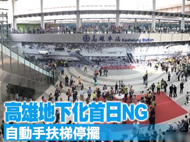 為高雄市貌更新,行政院核定市區鐵路地下化計畫,並於2009年動工,等待將近10年,14日上午終於正式第一階段切換通車,但在啟用首日卻相當落漆,不但自動買票機故障、過票機閘門卡卡不放行,就連手扶梯也一口氣壞了3座;當有旅客反映手扶梯不會動時,現場工作人員還自信滿滿地提醒「這是自動的啦!來,我坐給你看!」接著一個箭步踏上前,但手扶梯卻未如預期開始運轉,工作人員當場出糗,還疑惑地問「咦,怎麼沒有動?」
