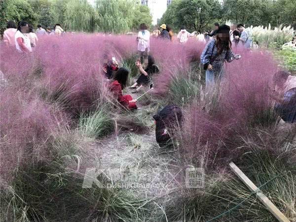 浙江省杭州市濱江江邊公園種著一片「粉黛花海」,日前頻繁出現在抖音APP裡,吸引了不少抖音玩家前來拍照打卡,彷彿成了「打卡聖地」。不過,很多人來拍照時完全不顧及花草的感受,要麼使勁地踩踏、要麼一屁股坐進去,導致原本直挺挺的粉黛,如今一片片的萎靡在地,讓人看了很不忍心。