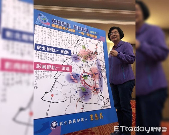 四處插上旗幟的奇景,被PO上臉書廣傳,包括所屬彰化地區的社團群組及爆料公社都有看到,這是在本月5日,彰化參選人王惠美提出的「改造彰化 翻轉命運 一軸一環雙樞紐」交通政見所提出的構想,她認為重要產業園及科技園區(如水五金產業園區、二林科技園區等)缺乏聯外的大眾運輸系統,因此才有在南彰化蓋捷運,來連結南北彰化。但也有人說,魏明谷縣政團隊也提出過蓋捷運、輕軌政策,也有可能是綠營支持者所為,因此到底是誰插的旗,網路議論紛紛。