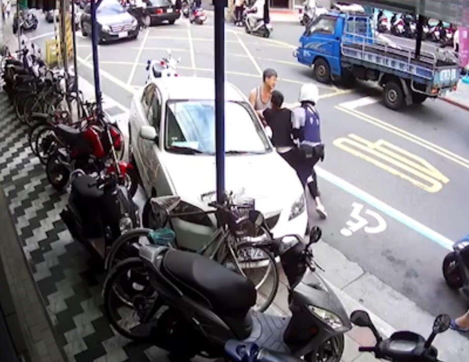 ▲黃佑呈駕駛的白色馬自達3轎車,突然衝進騎樓。(圖/翻攝畫面)