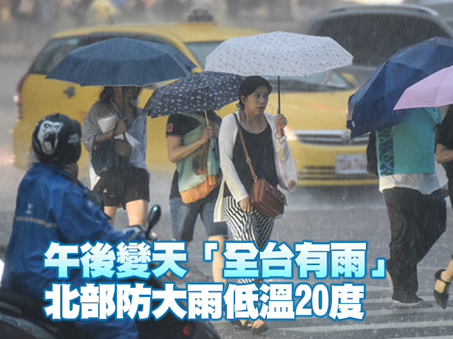 氣象局表示,周三華南雲雨區影響且東北風增強,各地雲量增,全台皆有降雨機會,迎風面基隆北海岸、北部山區及東北部地區降雨時間長,有局部大雨發生的機率,其他地區愈往南降雨機率愈低;溫度部分因為雲量增多且降雨時間增加,白天高溫約22至29度左右,清晨各地低溫約20度上下。