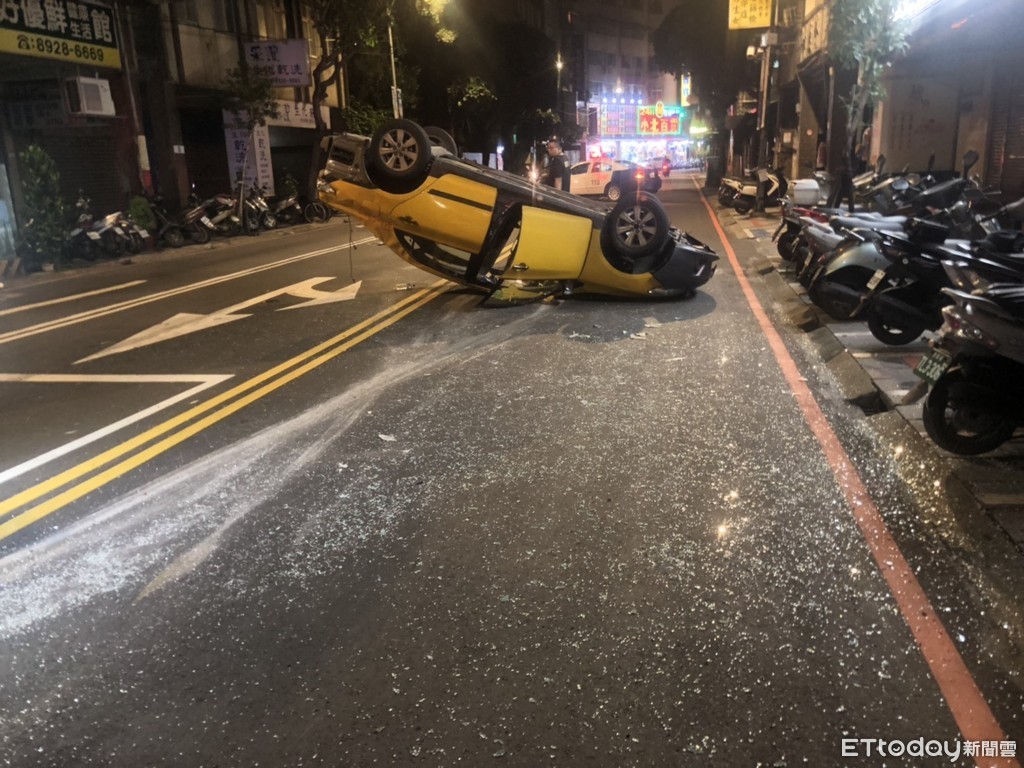 新北市永和區竹林路與永和路二段路口,16日清晨4時許,發生一起嚴重的車禍,藍姓駕駛開著一輛白色自小客車行經文化路時,疑似闖越紅燈,車頭擦撞正要通過路口的計程車,造成計程車當場翻覆,造成車內駕駛及一名乘客分別受到輕重傷,警消獲報到場後,發現廖姓計程車駕駛(47歲)還在車內,經協助脫困並包紮後,救護人員將兩人送醫救治,所幸並無大礙,肇事的藍姓駕駛並無受傷。