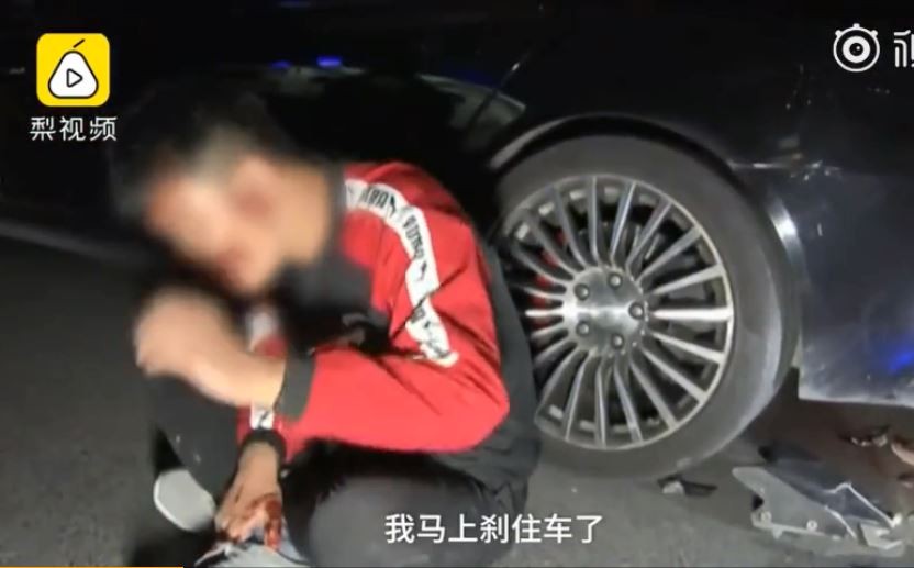據梨視頻報導,年輕人撞車後癱坐在地上說,自己有喝一點啤酒,當時要撞上時是有煞車但煞不住,電動摩托車的後輪整個翹起來,「我就摔在地上了」。救護人員到現場時,想要送滿臉血的他去醫院還被拒絕「我明天要上班」;他最後放生大哭的被攙扶起來,躺上擔架進到救護車內。