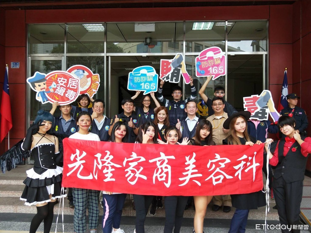 基隆市刑警大隊16日在警察局一樓大門前,並邀請基隆光隆家商師生,配合萬聖節彩繪成天使及魔鬼,與反毒大使及警員,徒步前往信義市場沿街發放文宣品宣導,將反毒理念藉此廣為宣傳,並配合選舉期間落實宣導反賄選政策。