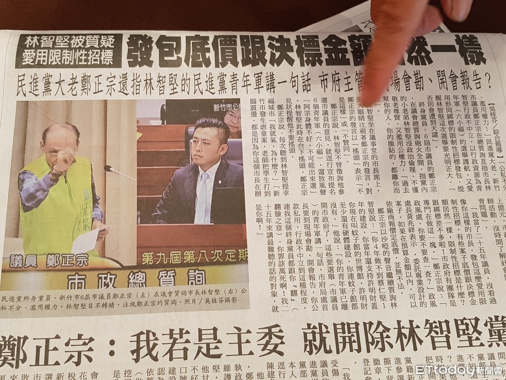 ▲黃任瑋表示,《聯合報》中台灣焦點頭版半版廣告,以新聞報導格式,刊載不實資訊,斷章取義抹黑市府依法辦理之限制性招標,並對林智堅市長之行政中立做出不實指控,版面僅於邊頁以極小字註明廣告,利用媒體散佈謠言,混淆讀者視聽。(圖/記者陳凱力攝)