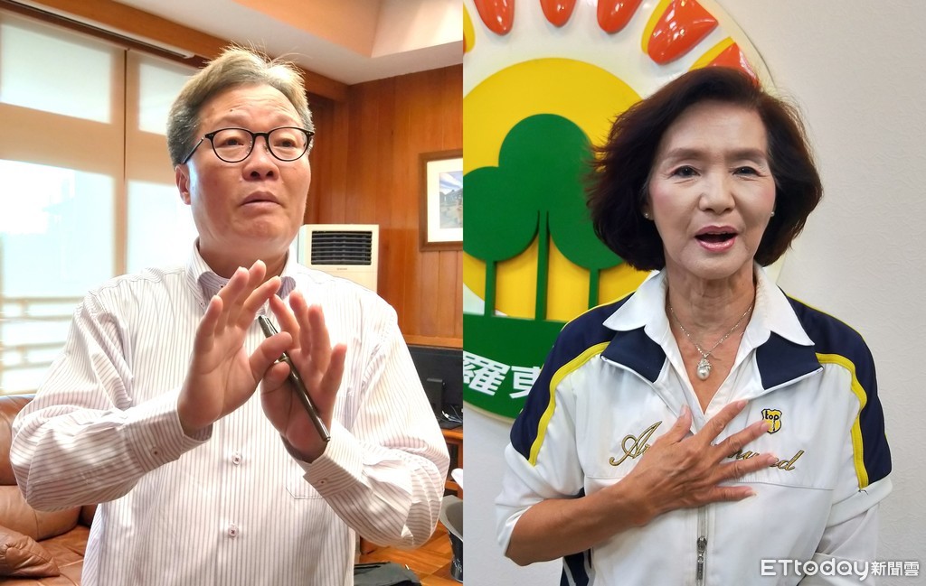 ▲宜蘭代理縣長陳金德(左)抨擊國民黨宜蘭縣長參選人林姿妙,提「免費營養午餐」政見,不夠資格當宜蘭縣長。林姿妙(右)陳營強調選民會支持這項政見。(圖/記者游芳男攝)