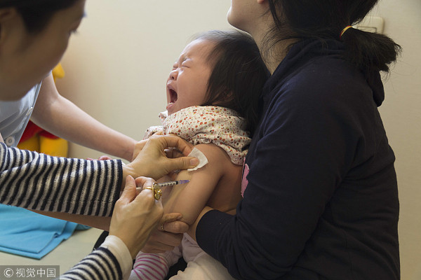 ▲孩童接種疫苗時嚎啕大哭。(圖/CFP)