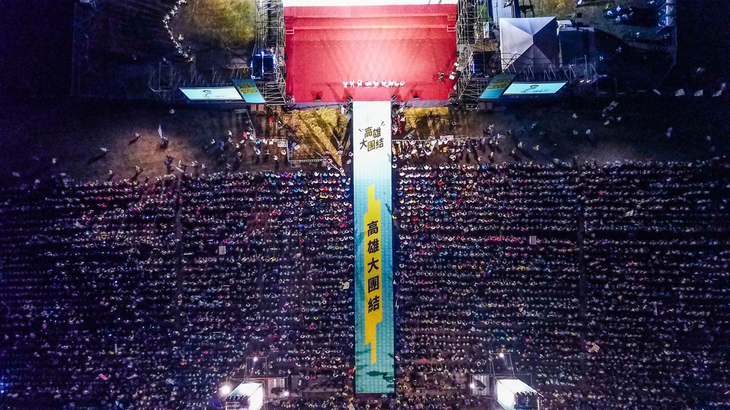 民進黨高雄市長候選人陳其邁14日在鳳山舉行競選辦公室成立造勢晚會,包括蔡英文總統、陳菊秘書長等大老及超過三萬名支持者熱情到場力挺,氣勢如虹。不過,資深媒體人黃暐瀚卻指出,從空拍照中看出2大疑點,他認為韓國瑜贏了。