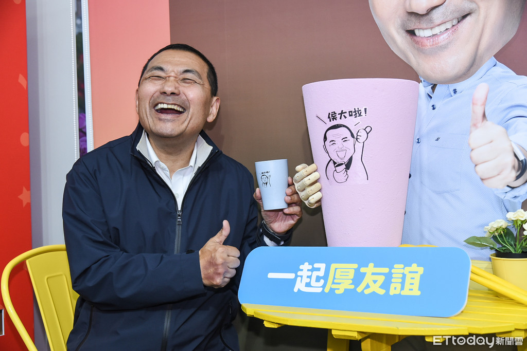 ▲國民黨新北市長候選人侯友宜堆出全新「侯大啦!Hodala Drink Bar」。(圖/記者林敬旻攝)