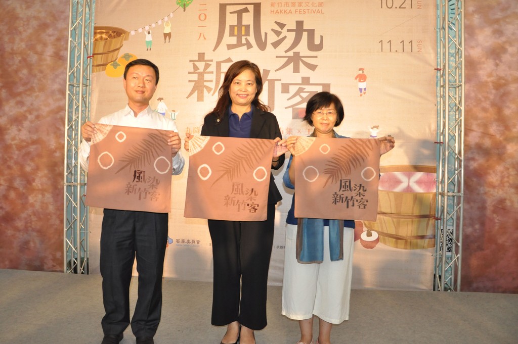 新竹市副市長沈慧虹致詞時表示,新竹市是個追求多元、包容、分享、共好的城市,客家族群佔全市人口的3分之一,與其他族群均能彼此分享各自文化生活;新竹市亦是風的城市,如烏魚子、柿餅等,風起時也是染布時,尤其這次使用新竹特產的黑葉荔枝,開發出全新的染料,讓客家染布有更多的可能性;同時長達一個月的客家文化節中,在食、衣、育、樂等不同面向推廣客家文化,讓新竹市更多的年輕人對客家文化傳承認同,進而有使命感,走出更長更遠的路。