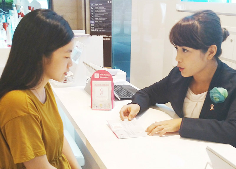 花王集團從10月1日至11月30日響應粉紅絲帶活動,共同宣傳乳癌早期發現早期治療,每年捐贈20萬日圓給財團法人乳癌防治基金會,以幫助基金會宣導乳癌防治的正確觀念、協助乳癌病友身心調適。