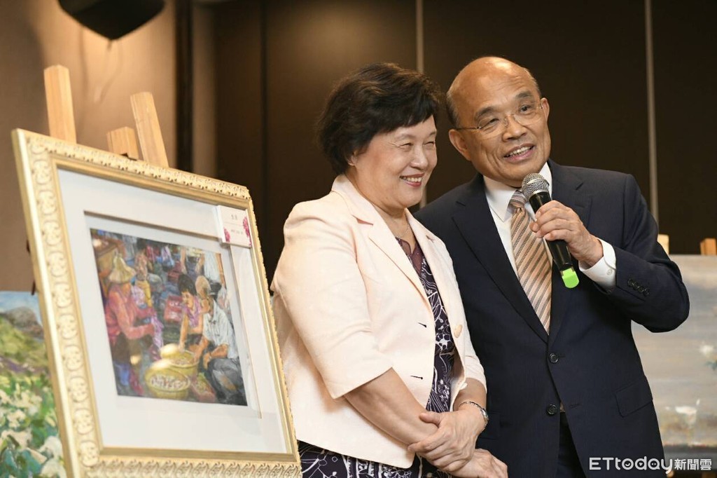 超愛老婆的蘇貞昌談及太太的畫作讚不絕口,「她是大畫家,畫得很好,而且我覺得以前實在很對不起,讓她都沒有時間畫,現在她繼續畫,一定會很好,尤其她的畫很溫馨,都是我們的家人,我覺得非常地,讓我們看到畫就看到溫暖。」