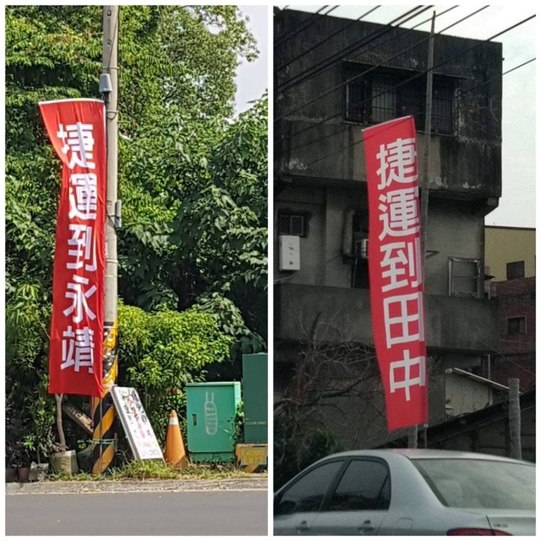 本月5日在臉書上瘋傳彰化街頭四處插上「捷運到員林」、「捷運到田中」、「捷運到二林」的旗子,引來網友熱議,留言內容包括:「有夢最美」、「就讓捷運一直開到天堂地獄」、「還不如每人發一台電動機車代步還比較省錢」,也有網友酸「鄉下地方蓋捷運是等死啊 南部人出門都開車騎車 誰還在給你搭捷運 連搭公車都成問題了 暈倒」、「蓋捷運幹嘛」、「不要選舉一到,支票亂開,等到都百年歸天了,捷運還在規畫」。