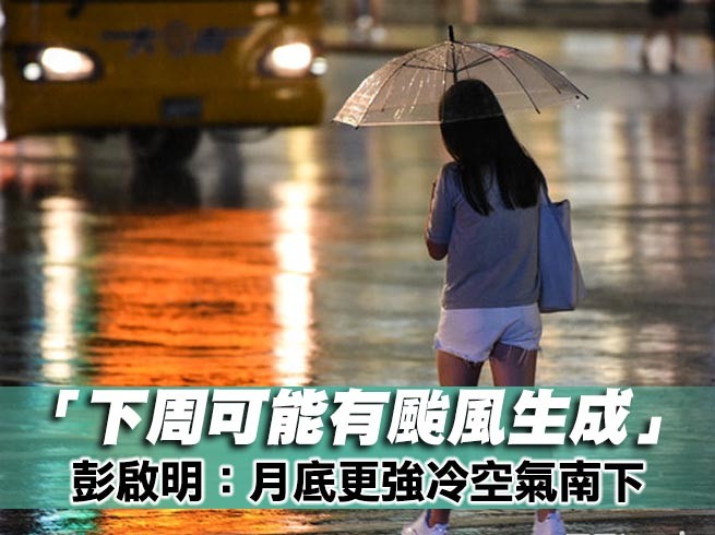 天氣風險公司總經理彭啟明表示,預期月底北方高壓可能會醞釀,「有可能有波更強的冷空氣南下」,月底或11月初有明顯降溫的機會;下周關島附近有颱風生成機會,不過目前太平洋高壓偏東,有颱風生成要跑到台灣附近的機會較低,往北的可能性較高。