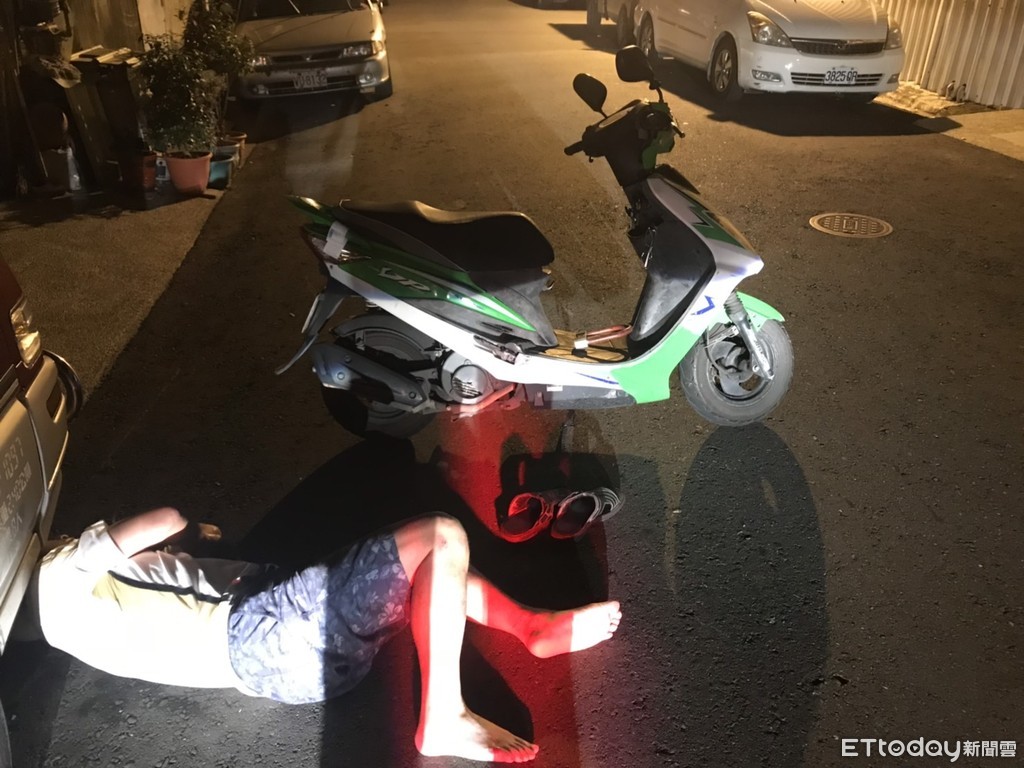 ▲騎士酒駕自摔,當街大睡叫不醒。(圖/記者吳奕靖翻攝,下同)