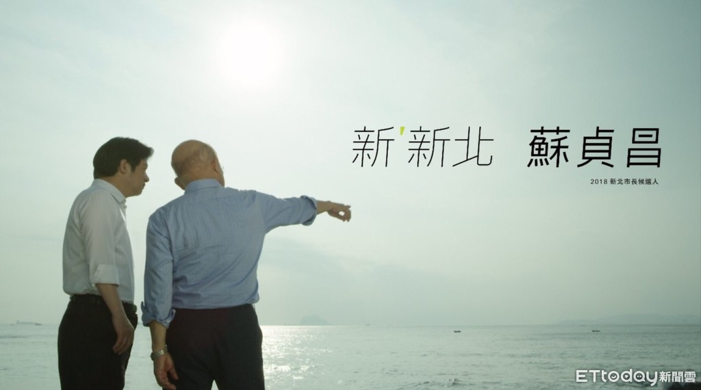 蘇貞昌最新競選廣告「作伙疼惜,咱的新北」找來「新北子弟」賴清德合體,難得回到家鄉、身邊還有前輩蘇貞昌相伴,賴揆帶著蘇貞昌到萬里龜吼漁港旁的公園眺望海景,一句「我阿爸就葬在那」好感性,他也不忘細數蘇貞昌對台北縣貢獻,談到未來將作伙帶頭,證明兩人是會做事的團隊,為新北市帶來新希望。