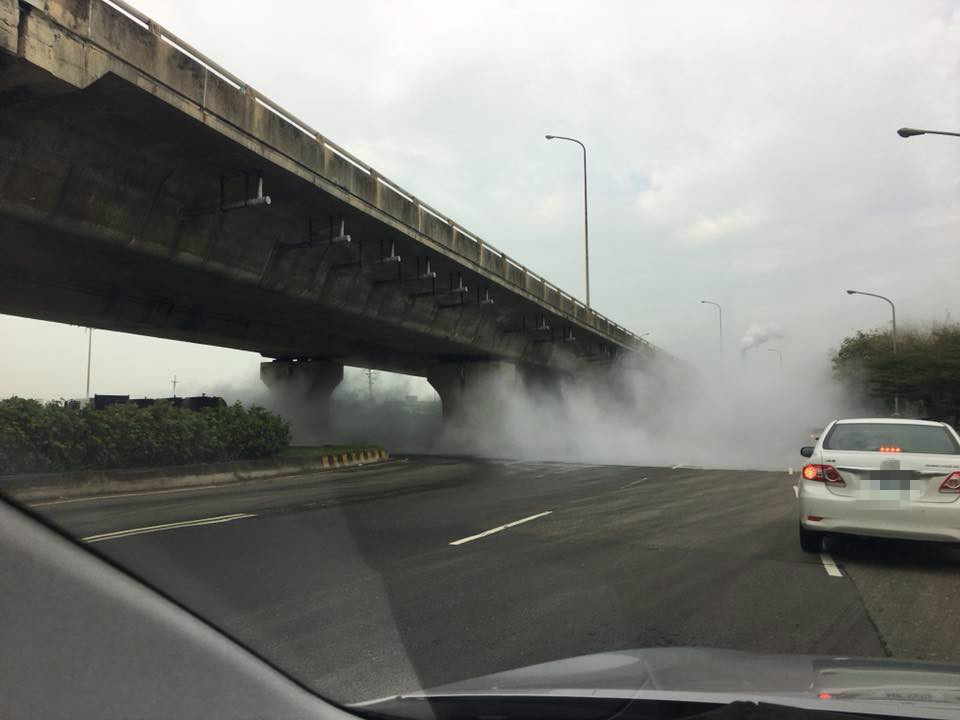 ▲台61線驚傳有裝有鹽酸的桶子突然破裂,造成現場煙霧迷漫,所幸現已排除狀況。(圖/翻攝自爆料公社)