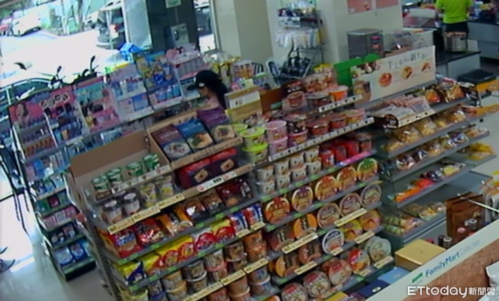 ▲女移工戴鴨舌帽、口罩行竊。(圖/記者李忠憲翻攝)