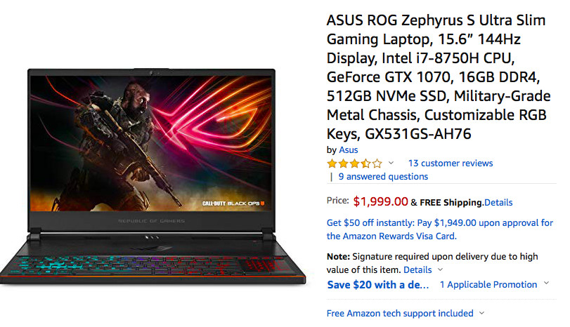 ▲華碩電競筆電ROG Zephyrus S登亞馬遜推薦榜。(圖/翻攝Amazon)