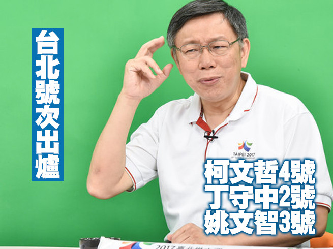 台北市長候選人抽籤號次19日出爐,現任市長柯文哲拿到4號、國民黨台北市長候選人丁守中2號、民進黨台北市長候選人姚文智3號、台大教授李錫錕5號、產險公司經理吳蕚洋拿下1號。