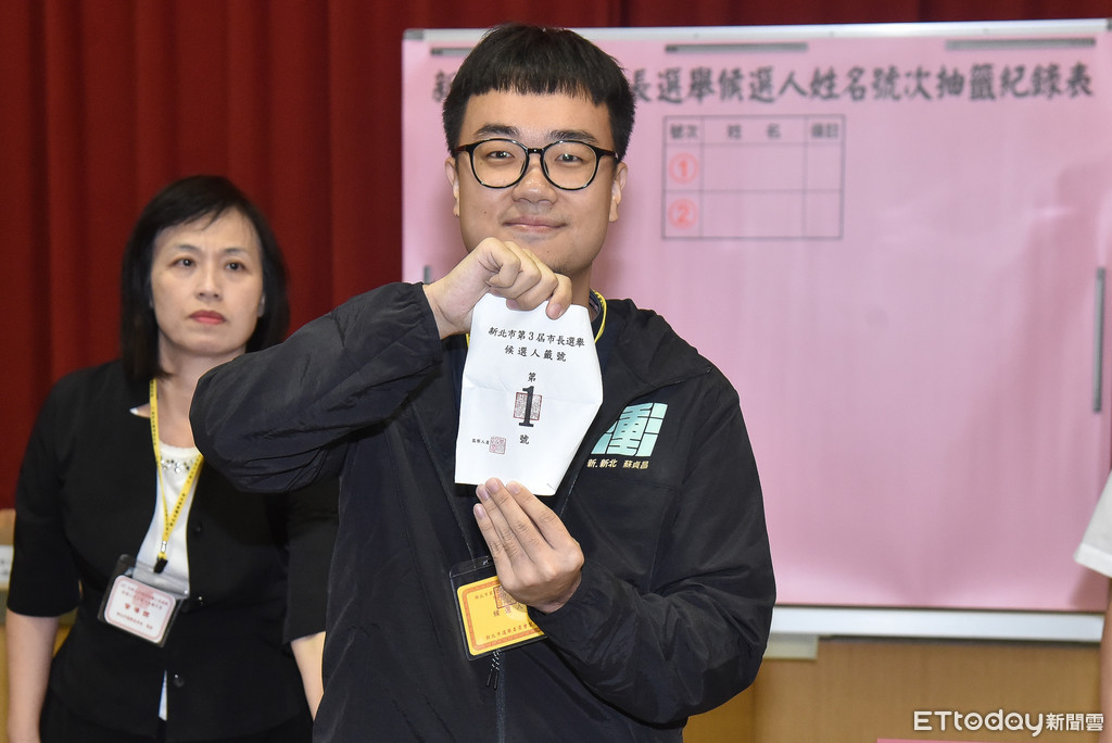 新北市選舉委員會19日上午辦理候選人姓名號次抽籤,民進黨新北市長候選人蘇貞昌由發言人黃韋鈞代表抽籤,結果抽到1號團隊興奮地喊出「台灣最大、新北第一」。黃韋鈞表示,「其實還蠻平靜的,沒有想像中那麼緊張,認為是一個好的開始。」