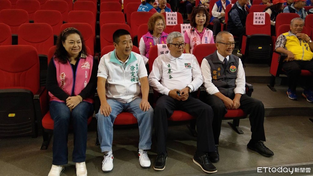 無黨籍縣長候選人徐定楨抽中2號,並秀出「好事成雙」字聯。現任縣長國民黨籍候選人徐耀昌抽中4號,字聯上也寫著「四民同心,幸福永續」四個大字。其餘兩位候選人依序為1號朱泰平,和3號黃玉燕。