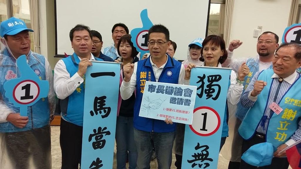 謝立功在接受媒體訪問時說,抽到1號代表一馬當先,很有意義,讓國民黨從台灣頭贏到台灣尾,還特別準備了一份「市長辯論會的邀請書」要親自邀請林右昌辯論,可惜他選擇迴避。