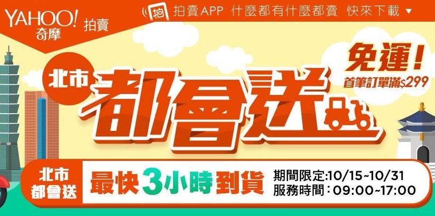▲Yahoo奇摩拍賣推出北市都會送最快3小時到貨,預計試營運至10月底。(圖/翻攝自奇摩拍賣)