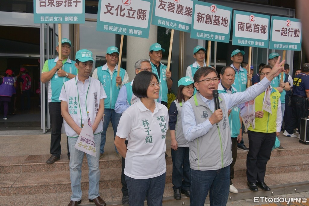 民進黨台東縣長候選人劉櫂豪19日在妻子林子煊、民進黨台東縣黨部主委李翠峯、競選總部主任委員陳建年、原住民後援會總召林正二以及競選團隊同仁、上百位支持者陪同下,前往台東縣選委會,舉行台東縣長候選人號次抽籤。在現場眾多支持者展現團結勝選氣勢下,劉櫂豪抽中2號。