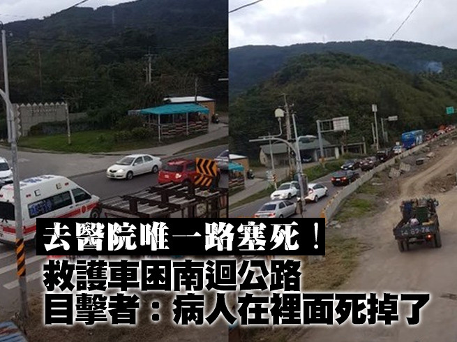 ▲全長118公里沒有病床醫院,救護車塞南迴3分鐘無法通行。(圖/網友授權使用)