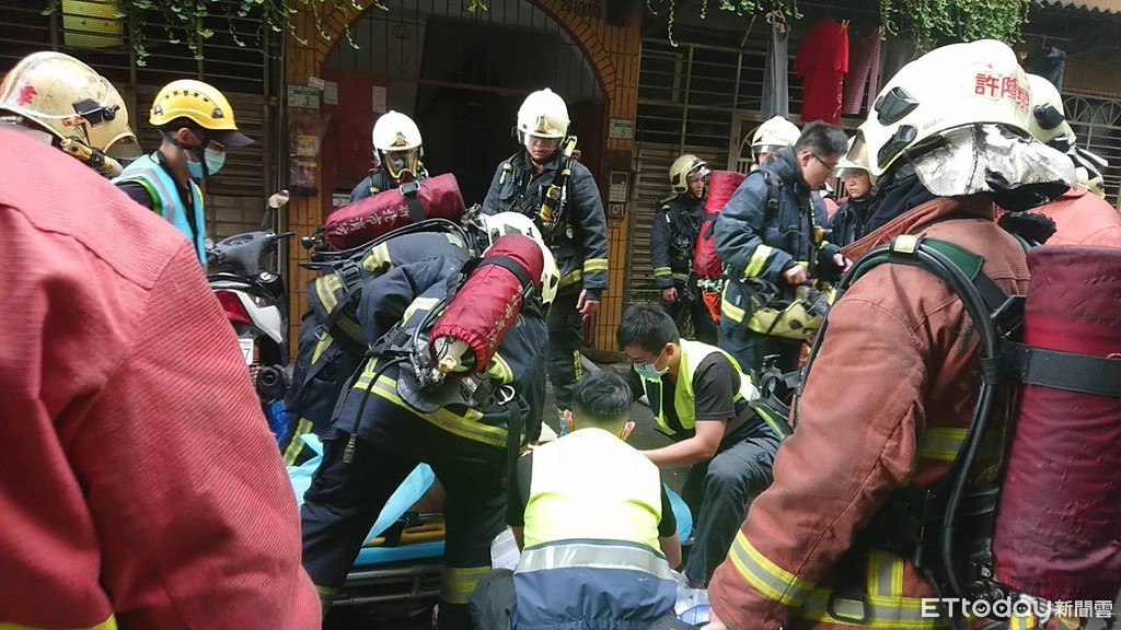 ▲救護人員在屋內廁所救出一名男子已無生命徵象。(圖/記者陳豐德翻攝)