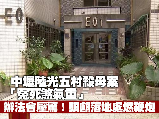 桃園陸光五村是桃園最大的眷村國宅之一。18日晚間發生住在國宅E01棟12樓的逆子梁男與母親爭執後,發了狂似的不斷大吼大叫,持菜刀砍下母親的頭,由窗戶往1樓中庭丟,也將家中的沙發、除濕機等大型家具、電器等各種物品都往下砸,居民於第二天,在中庭草叢上發現死者頭髮整戳被勾住,現場一片凌亂,事發後,居民們直說,晚上根本睡不著了!