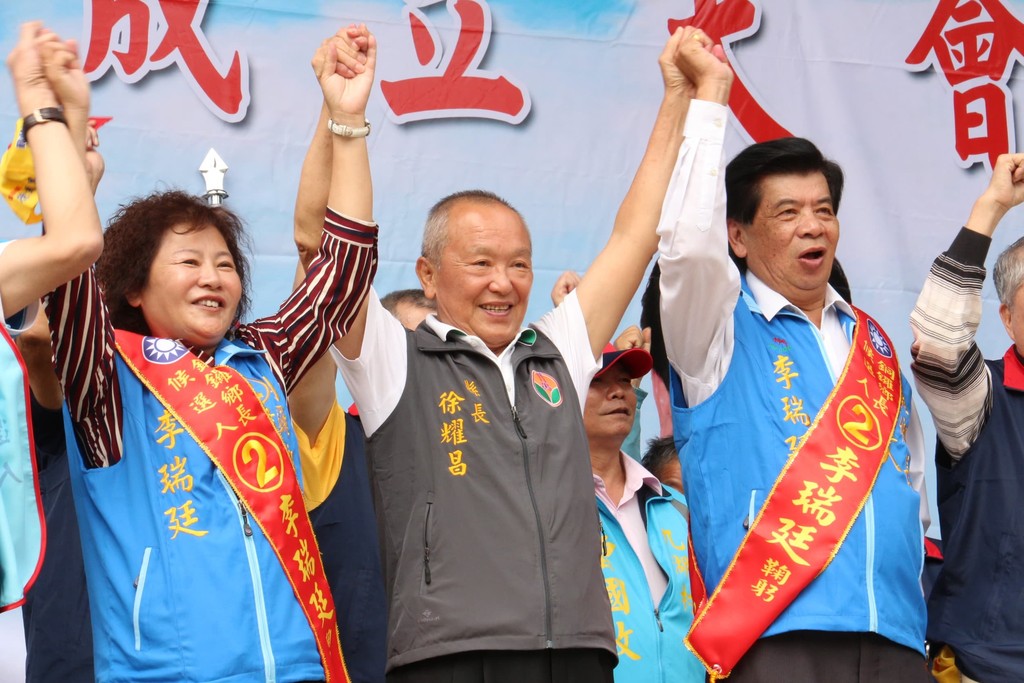 徐耀昌與銅鑼鄉長候選人李瑞廷聯合競選總部上午舉辦成立大會暨造勢活動,前縣長傅學鵬、立委陳超明、國民黨各候選人都到場參加,場面盛大。徐耀昌表示,將發揮「母雞帶小雞,小雞拱母雞」的作用,為年底五合一選舉全力打拼,讓國民黨獲得最大勝利。