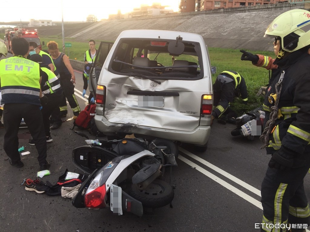 ▲新莊堤外道路發生5車連環車禍意外。(圖/記者陳豐德翻攝)