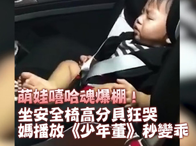 這名來自台中的萌娃Ian那天坐在車子上,因為不喜歡坐在安全座椅上,綁著安全帶就開始「媽媽,媽媽!」地崩潰大哭,沒想到媽媽播放了爸爸愛聽的《少年董》,雙手空划配上空踢神腳頓時靜止,回歸於音響的樂聲與車內的回音。