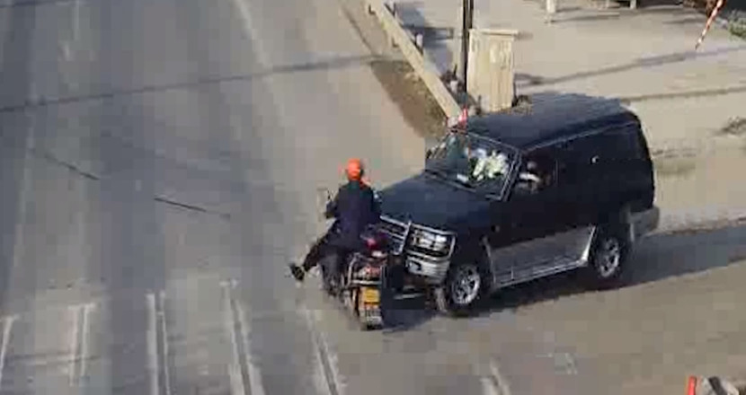 根據《北京時間》報導,臨海市杜橋交警中隊葉警官表示,到現場處裡的時候發現雙方「正在私了」(私下解決不透過警察),騎士找汽車車主要錢,說「我被撞了,拿了錢沒什麼大礙就算了吧」。葉警官看了監視器後發現,是電動車闖紅燈造成車禍,幸虧有戴安全帽,「如果沒戴恐怕就得進加護病房」,且「闖紅燈就得負全責」,汽車駕駛沒有責任。