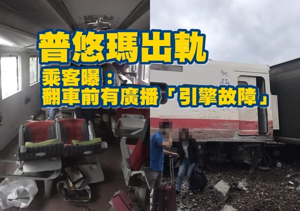 台鐵6423次普悠瑪列車今(21)日下午發生出軌意外,截至晚間21時28分,已知18名旅客死亡,164名旅客受傷。旅客事後受訪時表示,事故發生前,車長曾廣播引擎故障,必須排除;列車還一度臨停,之後才繼續行駛。