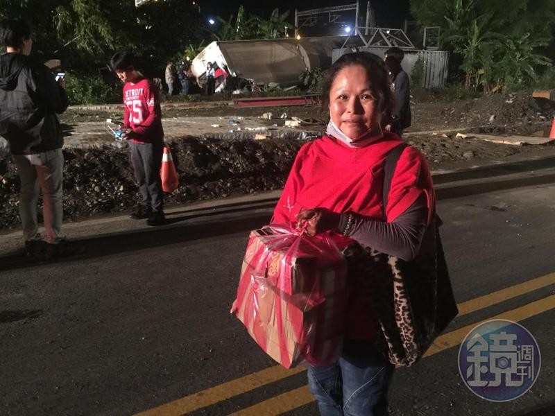 該婦人晚間帶著大捆金紙重返出事現場,希望能撫慰在這場意外中犧牲的死者,也為正在與死神拔河的傷者祈福。