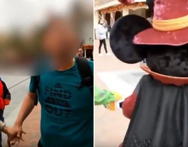 目擊者向陸媒《梨視頻》指稱,當時他剛好就走在米奇、米妮後面,穿著藍綠色上衣的男子突然跑了過來,也不管旁邊的女伴還拉著手臂,一掌就往米奇的頭套巴下去,大家都被這個突發事件給嚇到,接著才有人反應過來質問為何要拍打工作人員。