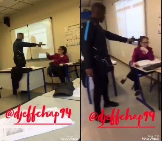 根據外媒報導,這名15歲的男學生因為法律上的原因,姓名並未被公開,影片中顯示他拿著一支假槍,在法國巴黎的布蘭利高中(Branly High School)的一間教室哩,對準坐在投影幕下老師的頭大喊「把頭低下!」模樣十分囂張跋扈,一旁還能聽到有人發出笑聲,似乎沒有意識到事情的嚴重性。