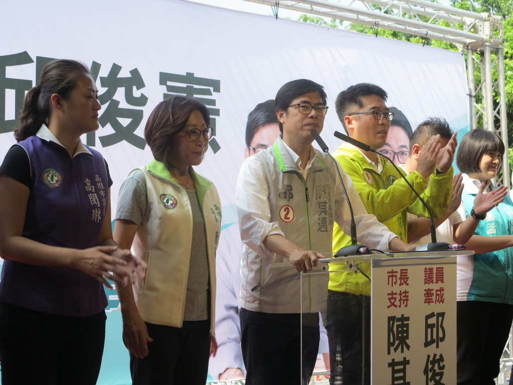 陳其邁表示,有些人在選市長,一方面說談經濟就好,不要說政治。但一方面卻一直在強調九二共識、台獨比梅毒還可怕,根本是做一套說一套,而且刻意忽視高雄的關鍵地位,其實從政治經濟的角度來看,高雄都是台灣的重中之重。陳其邁強調,「高雄不能輸,台灣才會贏!我們一定要贏,我們一定會贏!」