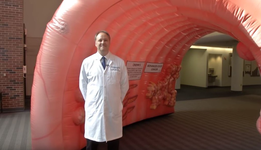 ▲癌症中心的「巨型大腸氣球」遭竊。(圖/翻攝自youtube/The University of Kansas Health System)
