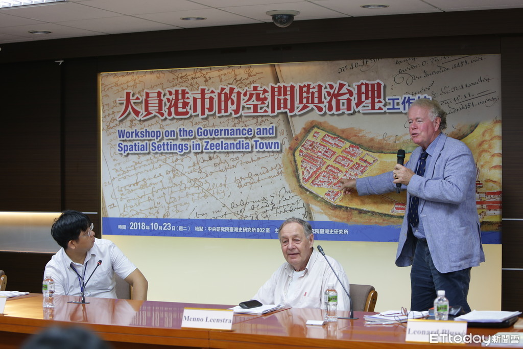 ▲荷蘭萊頓大學歷史研究所榮譽教授包樂史(圖右)分享「熱蘭遮市地籍表」。(圖/中央研究院提供)