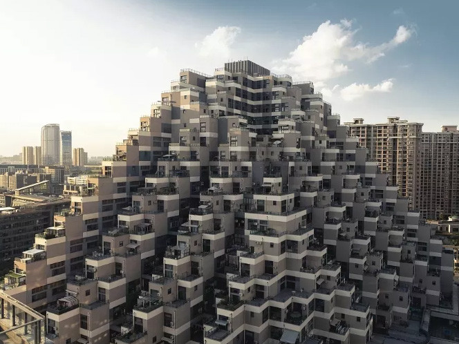 ▲酷似「金字塔」造型的住商混合大樓。(圖/翻攝自新浪房產微信)