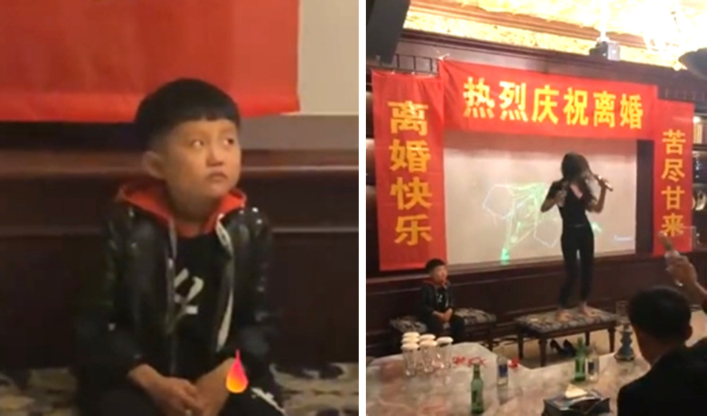 近日在微博流傳一則影片,一位辣媽為了慶祝自己擺脫婚姻,隆重舉辦「離婚派對」,掛著大大紅布條寫著「熱烈慶祝離婚」、「苦盡甘來」等祝賀詞,現場還有多名男士一起舉杯同歡。不過,網友們全被呆坐一旁的小男童抓住目光,原來這位是辣媽的兒子,只見他超到位的厭世表情讓人忍不住笑稱「早知這樣還不如跟爸爸了…」。