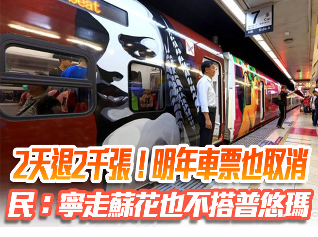 台鐵普悠瑪列車翻覆造成18人死亡、上百人受傷的嚴重交通意外,不僅引發民眾對普悠瑪安全性的憂心,更連帶影響了花蓮觀光旅遊,截至昨晚為止,往返台北-花蓮的觀光專車「洄瀾之心」就被退了2千張,當中甚至包含明年初的車次,另外花蓮旅館也爆退訂潮,目前已被退訂了4百多間。