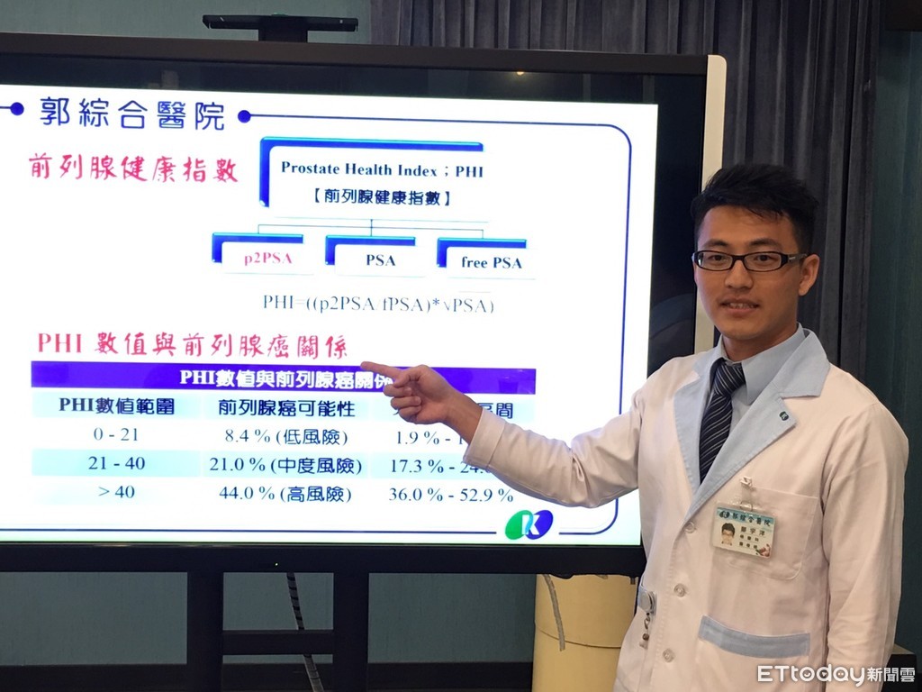 郭綜合醫院檢驗科鄭宇洋醫檢師說前列腺健康指數(PHI),是目前臨床上用於檢測前列腺癌的新技術,其診斷特異性優於傳統前列腺特異性抗原(PSA)達3倍之多,可用於協助當PSA檢查結果落於4-10ng/ml的可疑區間時,提供進一步的判定以輔助臨床診斷,可減少近50%切片檢查之需。